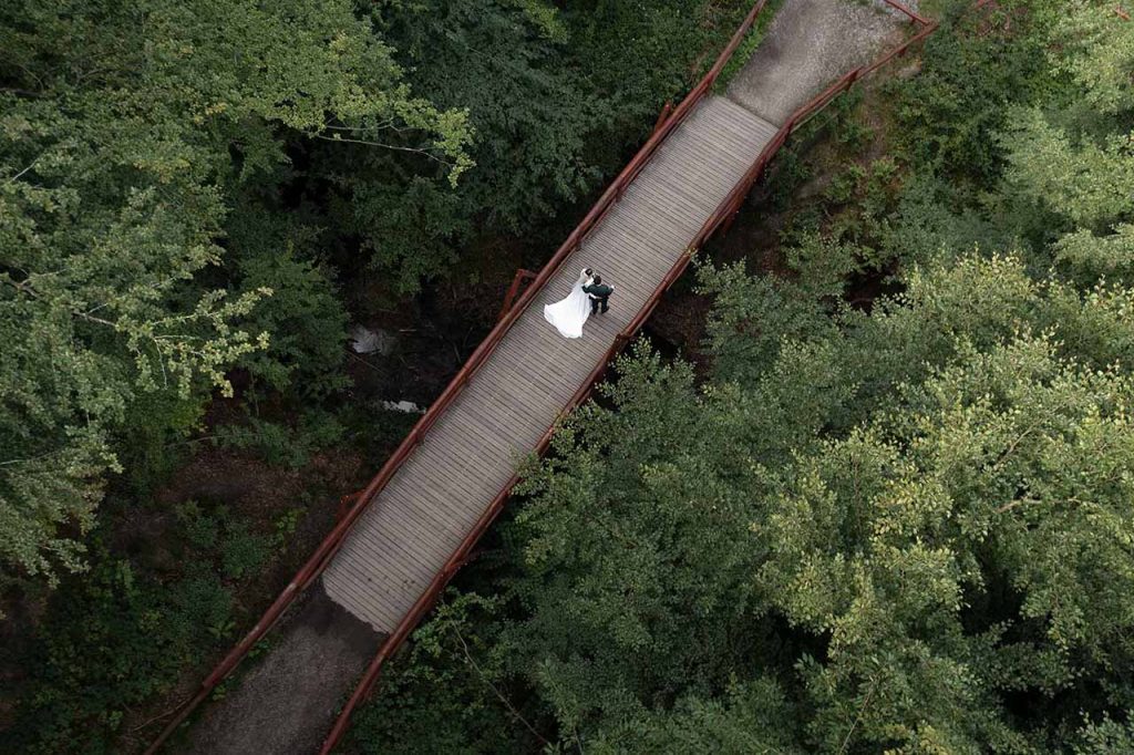 Natur og arkitektur: Selv arkitekturfotografers arbejde kan inspirere, linjer, mønstre og former, som du kan bruge når du placerer parret i en scene med stærke linjer (broer, bygninger, etc.). Naturfotografering kan inspirere dig til at tænke i skala f.eks. et lille par i en stor natur.